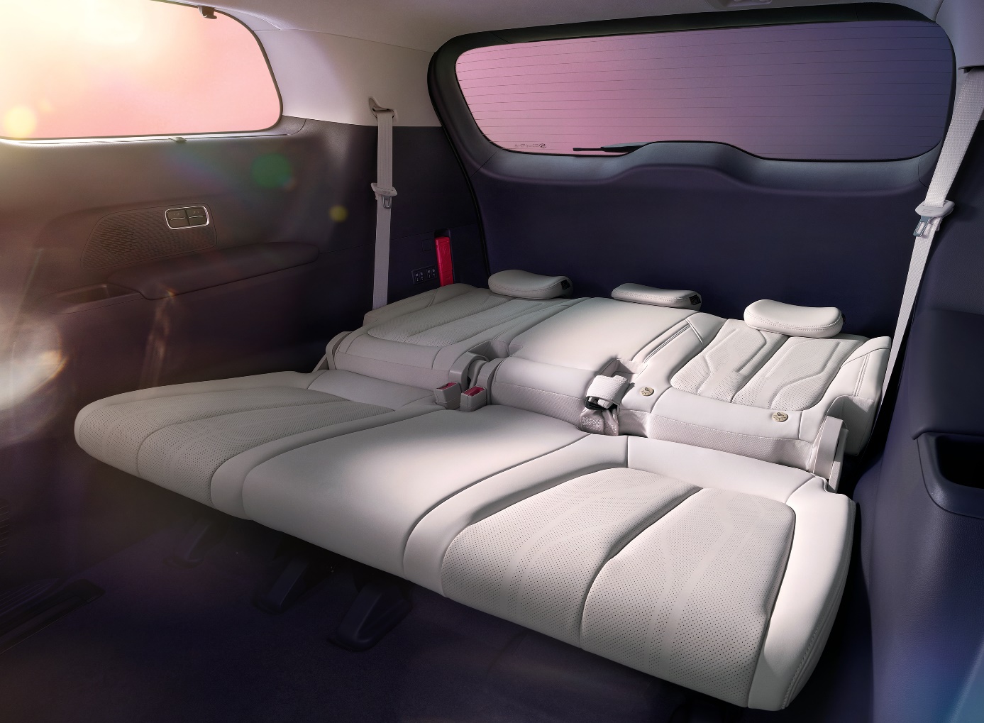 新车内饰全新升级,毫厘之间见豪华。同级唯一全系标配、全车三排使用Nappa真皮包覆座椅,甄选与奢侈品牌和私人飞机同款的超柔全粒面头层Nappa真皮,触感细腻柔软,辅以别具一格的“向上生长”花纹绗缝,豪华质感不彰自显。同级唯一的13mm绒高澳洲进口羊毛地毯采用100%纯羊毛纺线制成,致密柔软富有弹性,带给用户落足云端般的质感享受。Smart Touch光感触控板将门锁、座椅记忆等功能按键隐藏在16层工艺打造的金属拉丝质感饰板中,实现科技感与新豪华设计美学的完美融合。顶衬及A/B/C柱使用超细纤柔麂皮绒包覆,触感细腻,皮革顶棚拉手手感柔软,给座舱增添温润奢华的高级感。此外,新车还首次搭载星云流水礼宾音效,采用模仿大自然高山流水的悦耳音效迎宾,配以2.8米“步步生辉”银翼礼宾光毯、云起雪飞律动灯语,将豪华仪式感拉满,让用户每一次进出都享受到头等舱贵宾礼遇。