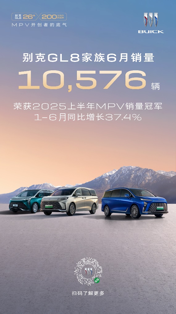 2025年7月1日 根据最新数据,别克GL8家族6月销售10,576辆,连续三个月销量破万;1-6月同比增长37.4%,荣获1-6月MPV市场销量冠军。其中,搭载行业最强“真龙”插混系统的全新GL8陆尚和GL8陆尊PHEV两款新能源MPV 1-6月销量占比约40%,为别克MPV贡献核心增量。随着宜商宜家的国民级MPV——全新GL8陆上公务舱于6月下旬“升舱”上市,第六代别克GL8家族谱系已全面焕新,展现出持续引领市场的强劲势头。