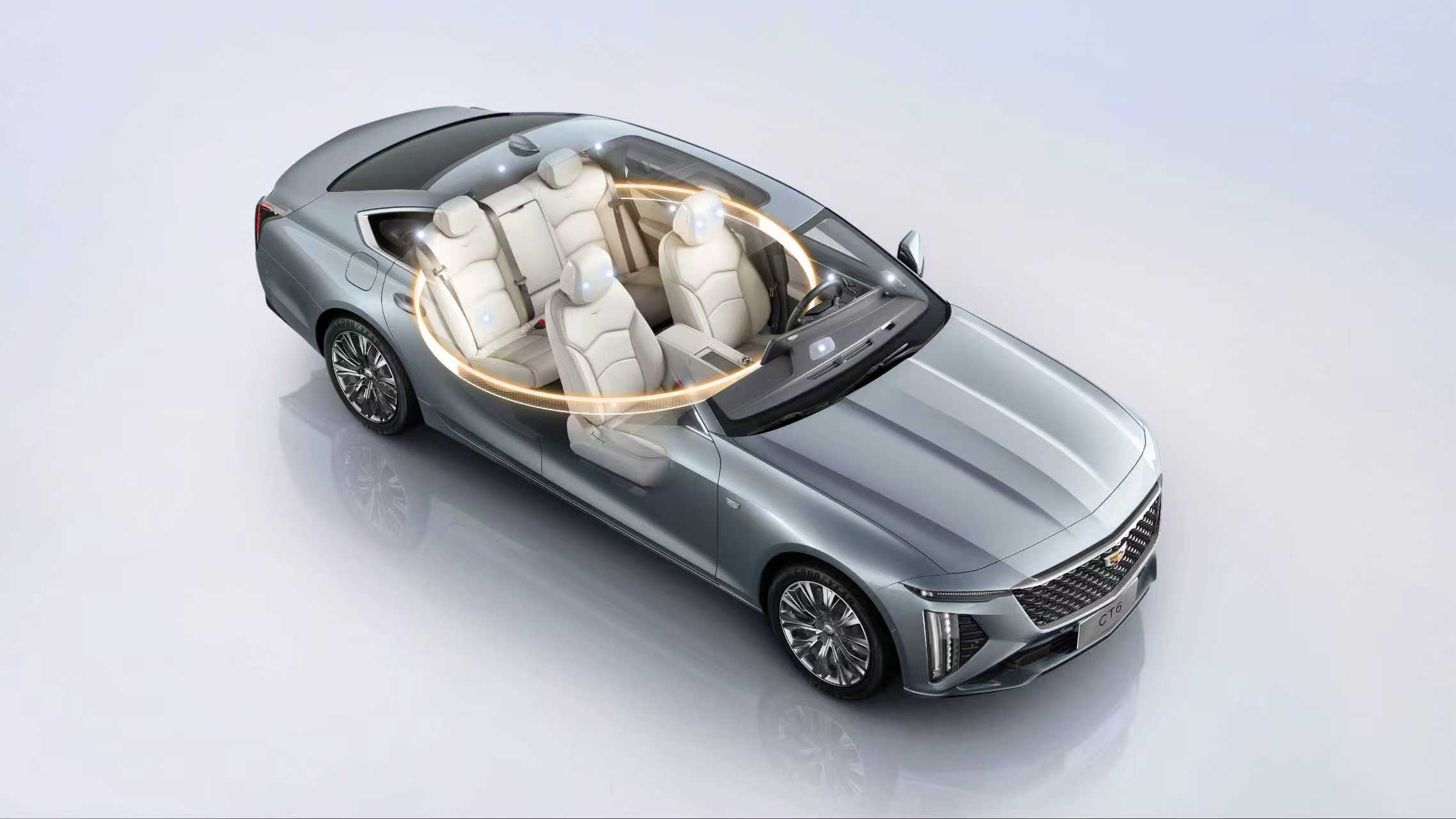 内饰方面,新CT6搭载凯迪拉克重磅打造的环抱式游艇级座舱,新增「云端谧境」专属内饰配色——甄选细腻浅色真皮与自然肌理木纹,在浅淡间营造出隔绝尘嚣的高雅静谧。全系标配33英寸9K环幕式超视网膜屏,搭配斩获红点设计大奖的OTA V5.0车机系统,带来极具沉浸感的惊艳视觉体验。座舱内更以设计师甄选多色氛围灯、门斯之盾晶钻旋钮、仪表板背面发光徽标等细节点睛,让豪华在方寸之间触手可及。
