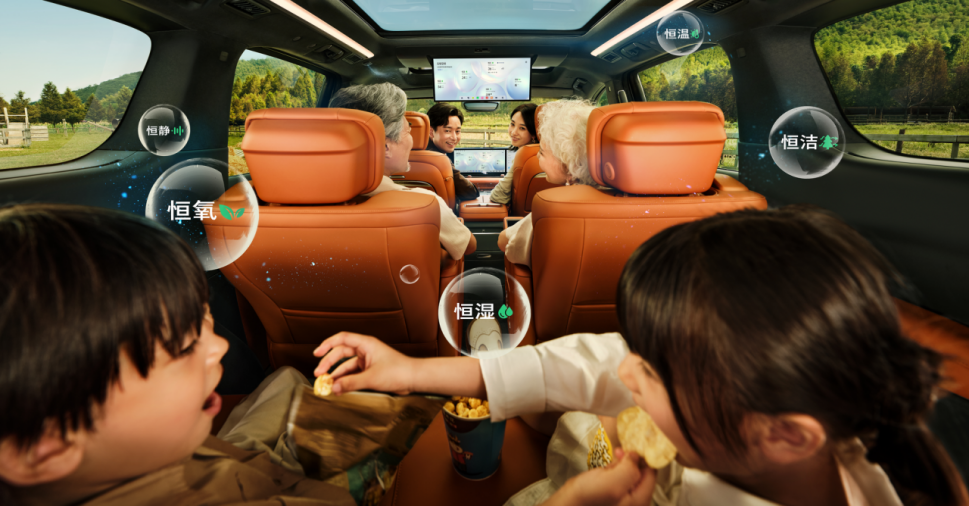 针对高净值家庭对健康出行的更高追求,至境世家行业首创“五恒”大健康座舱,采用先进健康科技与硬件配备,并联合全球顶尖认证机构,打造恒温、恒湿、恒氧、恒洁、恒静的健康舒适座舱环境。世家的座舱引入同级独有的松下nanoe™X净化技术,行业首创南德TÜV护眼认证1.1米超长智慧顶灯,前排三屏贯通式娱乐屏和后舱智慧屏均通过莱茵TÜV低蓝光护眼认证;座椅皮革通过全球最高标准OEKO-TEX婴儿级认证,即使被婴幼儿无意接触甚至啃咬也绝对安全;座舱的电磁辐射值比手机更低,无论是有娃家庭还是备孕夫妇,或是佩戴心脏起搏器等敏感人群都能放心驾乘。通过“五恒”大健康座舱,至境世家引领新能源MPV实现从“冰箱彩电大沙发”到“家庭出行大健康”的价值跨越。