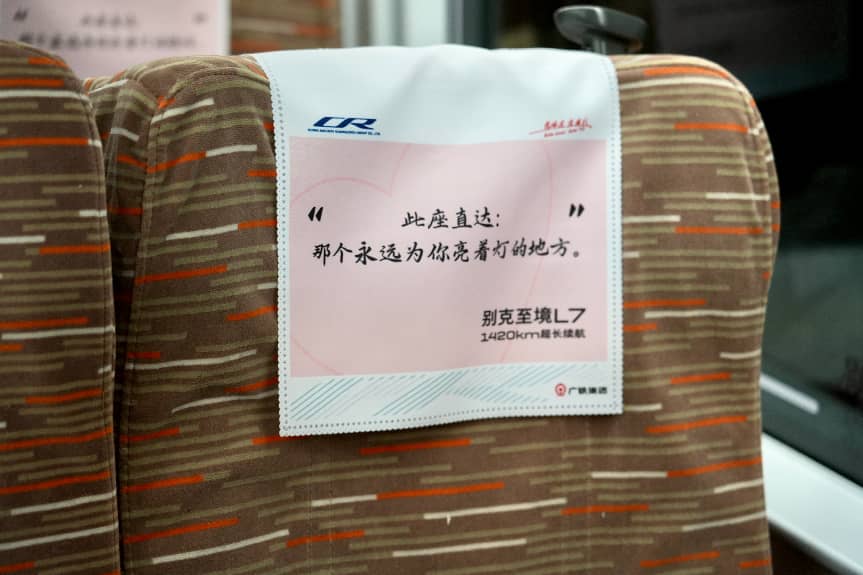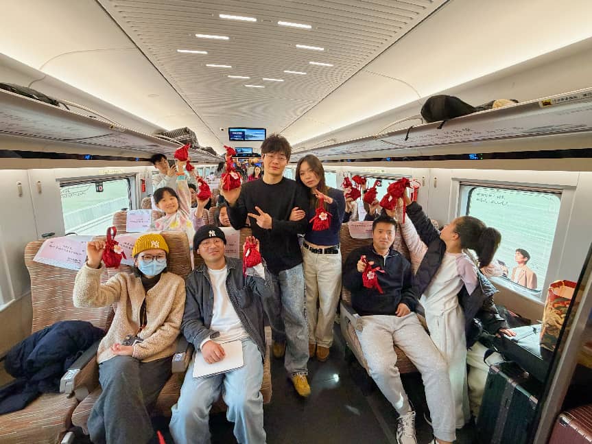 高铁上暖心装饰上写满了回家的期待与团圆的盼头